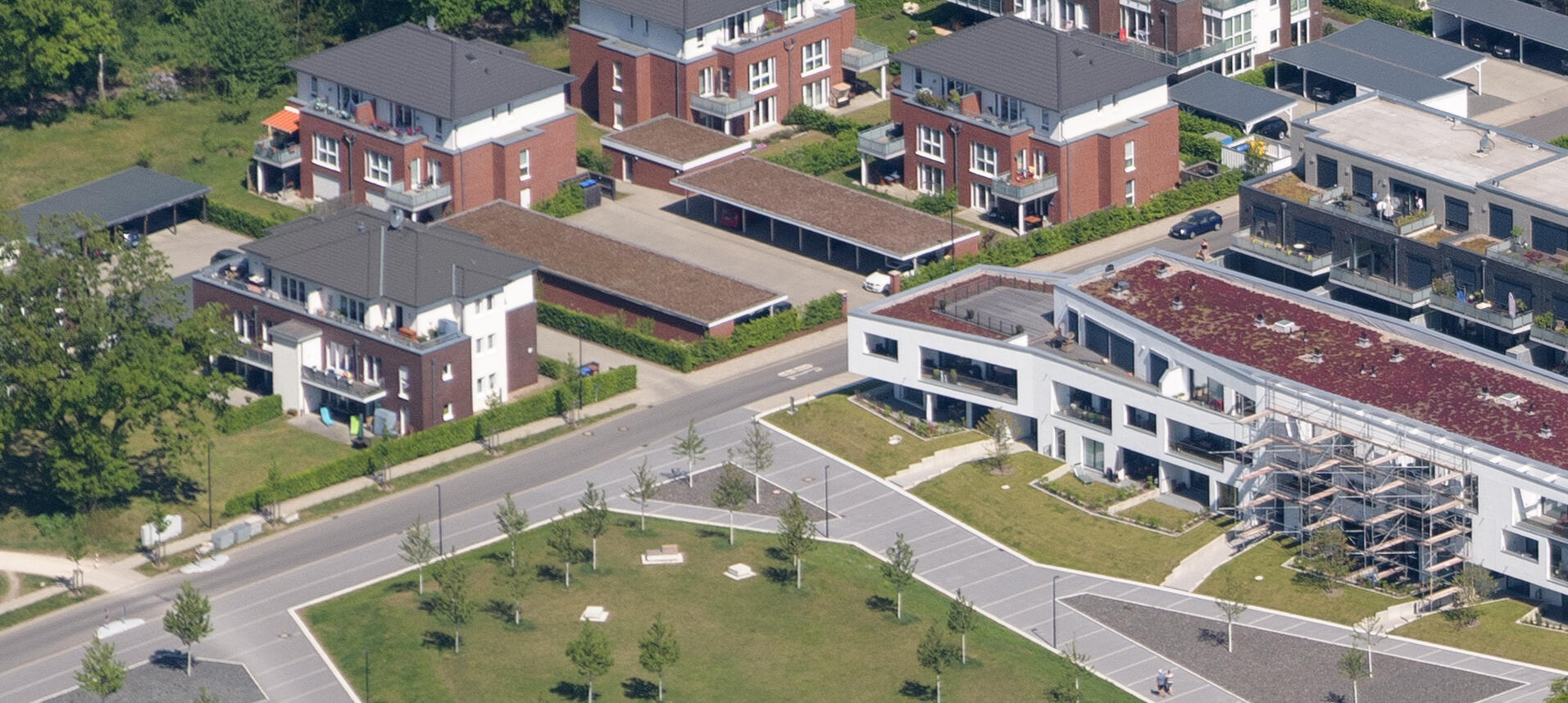Im Hanseviertel entstanden auf rund 35.000 m² attraktive Bauflächen für Einfamilienhäuser, Doppelhäuser und Reihenhäuser mit insgesamt 98 Wohneinheiten.